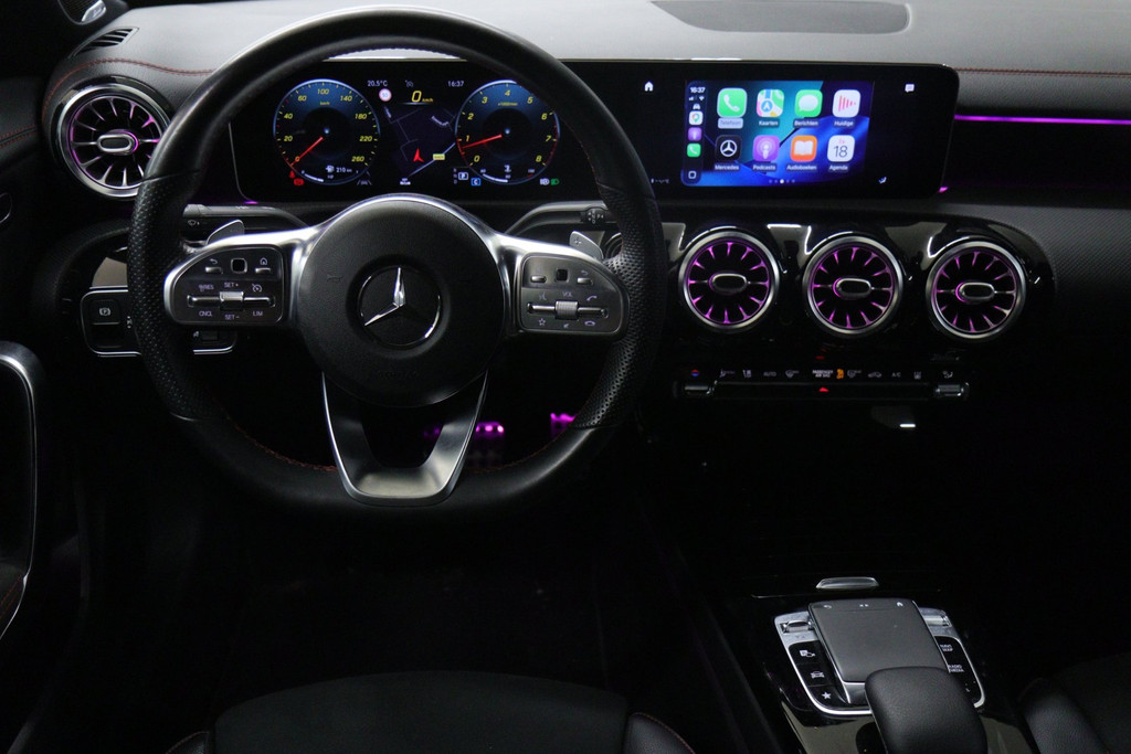 Uitgevoerd met een zeer rijke optielijst, waaronder panoramadak, sfeerverlichting, 360 camera, Apple CarPlay, memory seat, blind spot assist, stoelverwarming, verkeerslichtweergave, navigatie, keyless entry, lane assist en rem assist. Alles aan deze CLA is gericht op gemak, veiligheid en pure rijbeleving.